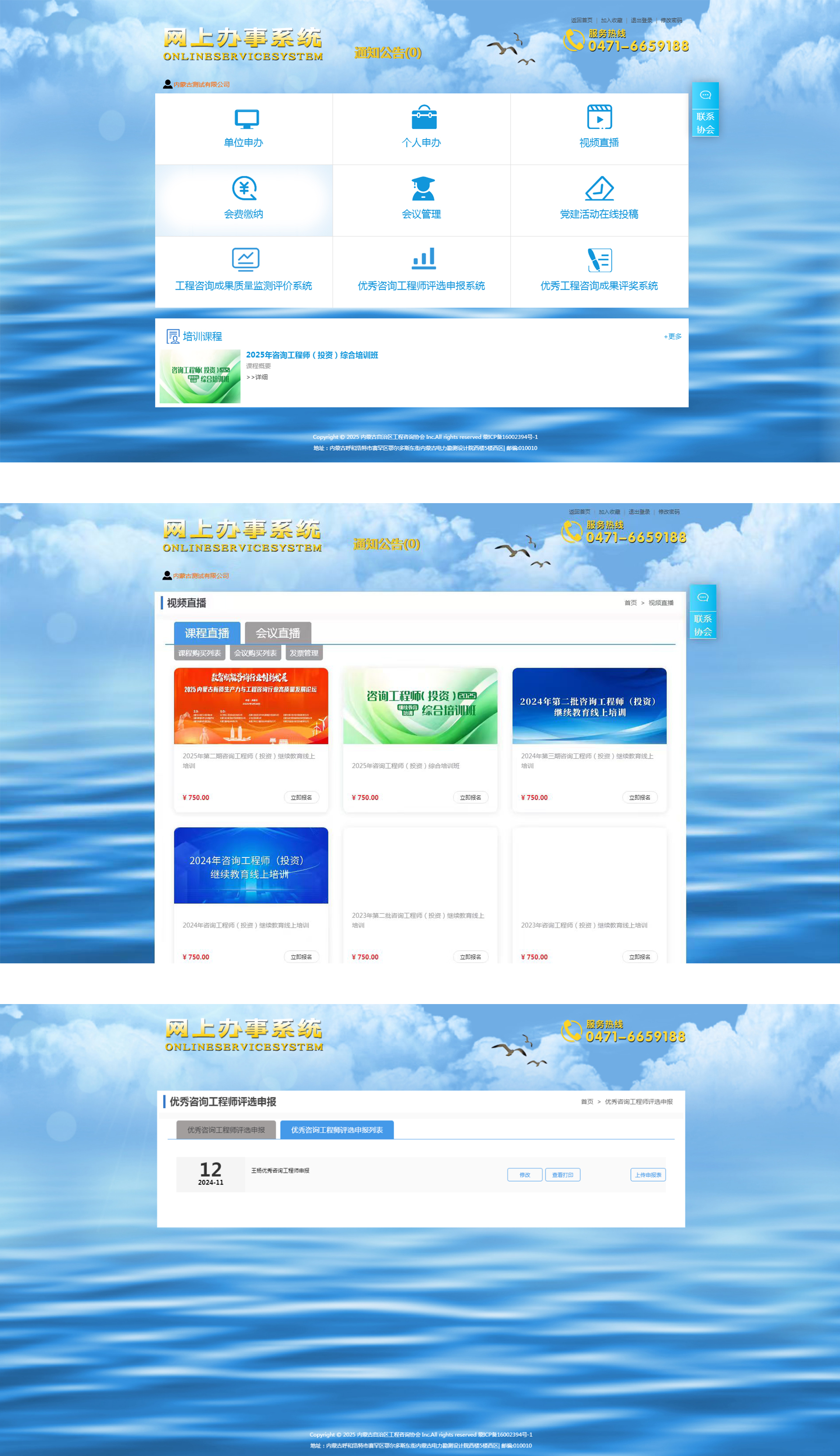 內蒙古工程咨詢協會網上辦事系統功能豐富,涵蓋多類業務與服務。申報領域,支持單位、個人事項申辦,以及優秀咨詢工程師評選申報、優秀工程咨詢成果評獎申報;管理與直播方面,可進行會議管理,也提供視頻直播服務;費用繳納上,能在線完成會費繳納;投稿與監測板塊,設有黨建活動在線投稿渠道,還有工程咨詢成果質量監測評價系統保障成果質量;此外,還提供培訓課程服務